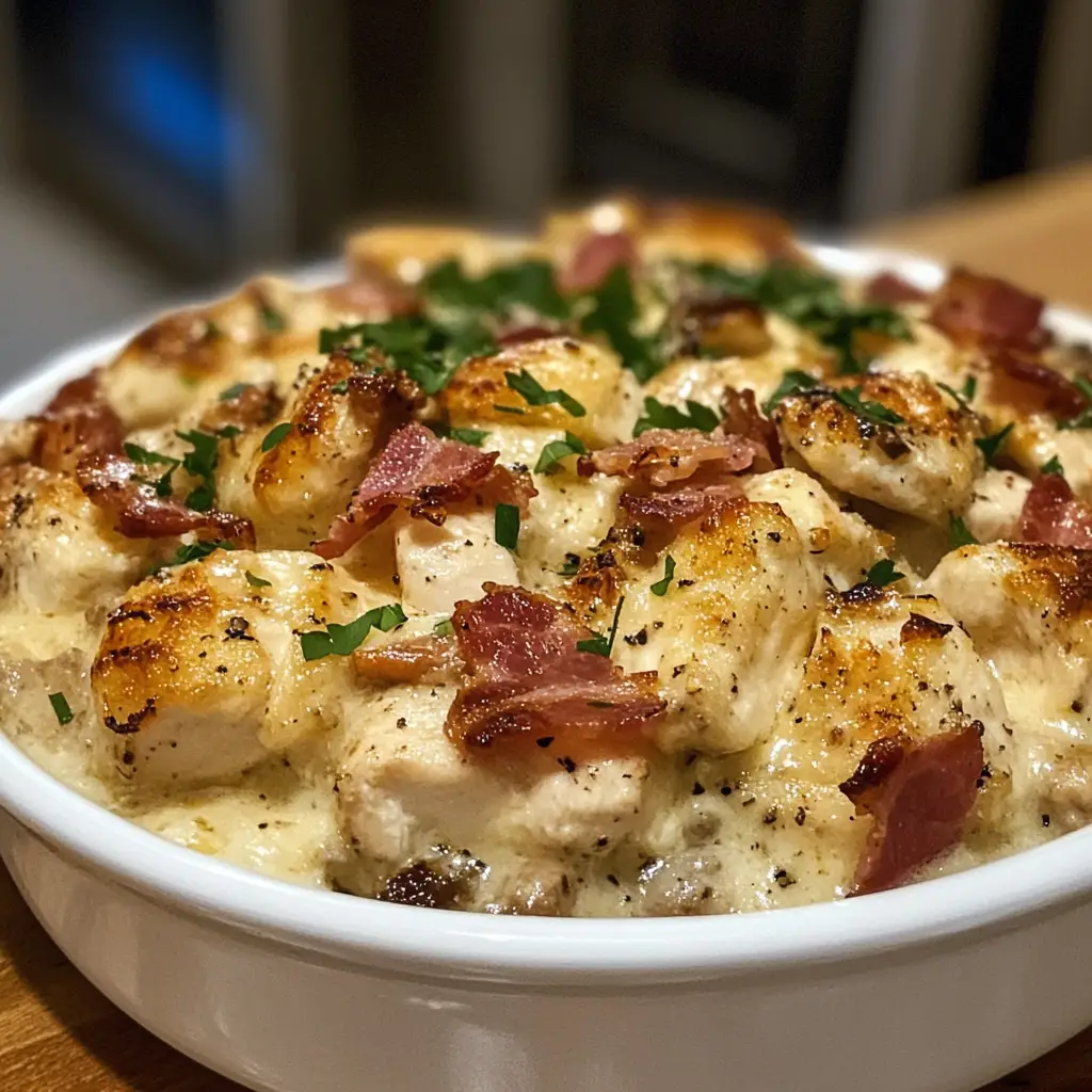 Bacon Ranch Chicken Casserole is the undisputed champion of comfort food, a dish that effortlessly combines familiar, beloved flavors into a single, decadent, and incredibly satisfying meal. This casserole is the culinary embodiment of a cozy night in, designed to please picky eaters, impress guests at a potluck, and provide the ultimate solution for a stress-free weeknight dinner. It masterfully brings together the smoky, salty crunch of bacon, the creamy, herbaceous tang of ranch seasoning, tender pieces of chicken, and the gooey, comforting embrace of melted cheese and pasta. Unlike many casseroles that can be dry or bland, this one is renowned for its creamy, luxurious sauce that coats every single ingredient.