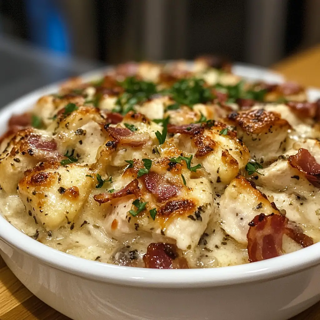 Bacon Ranch Chicken Casserole is the undisputed champion of comfort food, a dish that effortlessly combines familiar, beloved flavors into a single, decadent, and incredibly satisfying meal. This casserole is the culinary embodiment of a cozy night in, designed to please picky eaters, impress guests at a potluck, and provide the ultimate solution for a stress-free weeknight dinner. It masterfully brings together the smoky, salty crunch of bacon, the creamy, herbaceous tang of ranch seasoning, tender pieces of chicken, and the gooey, comforting embrace of melted cheese and pasta. Unlike many casseroles that can be dry or bland, this one is renowned for its creamy, luxurious sauce that coats every single ingredient.