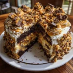 A rich and decadent cake filled with Butterfinger candy bars, perfect for any sweet tooth.
