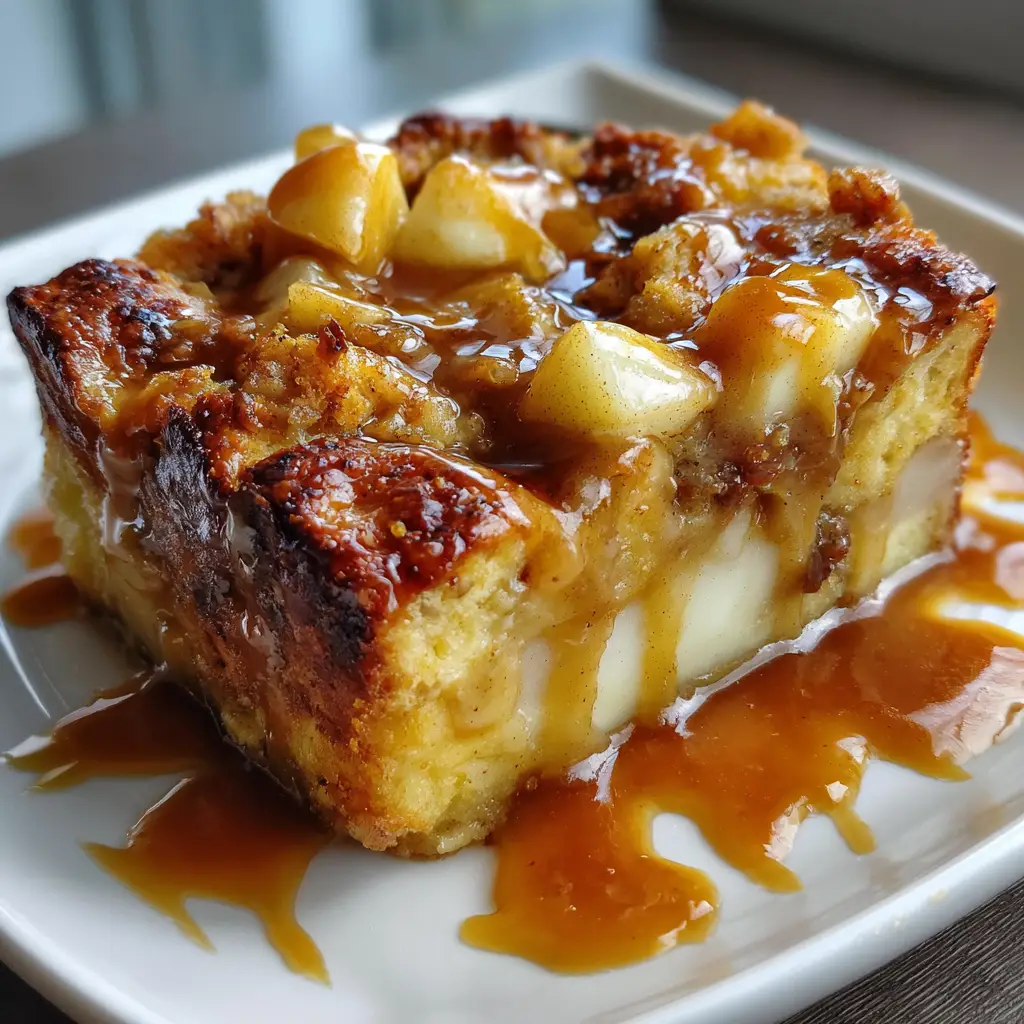 Caramel Apple Bread Pudding is the ultimate embodiment of rustic elegance and profound comfort. It is a dessert that takes the simple, humble concept of bread pudding and transforms it into a show-stopping, decadent masterpiece. Imagine layers of soft, custard-soaked bread, intertwined with tender, cinnamon-spiced apples and pockets of gooey, rich caramel, all baked to a golden-brown perfection. The top is slightly crisp, giving way to a luxuriously soft, almost soufflé-like interior that tastes like the very soul of autumn. Each warm, spoonful is a harmonious symphony of textures and flavors, the creamy custard, the soft fruit, the rich caramel, and the hearty bread.