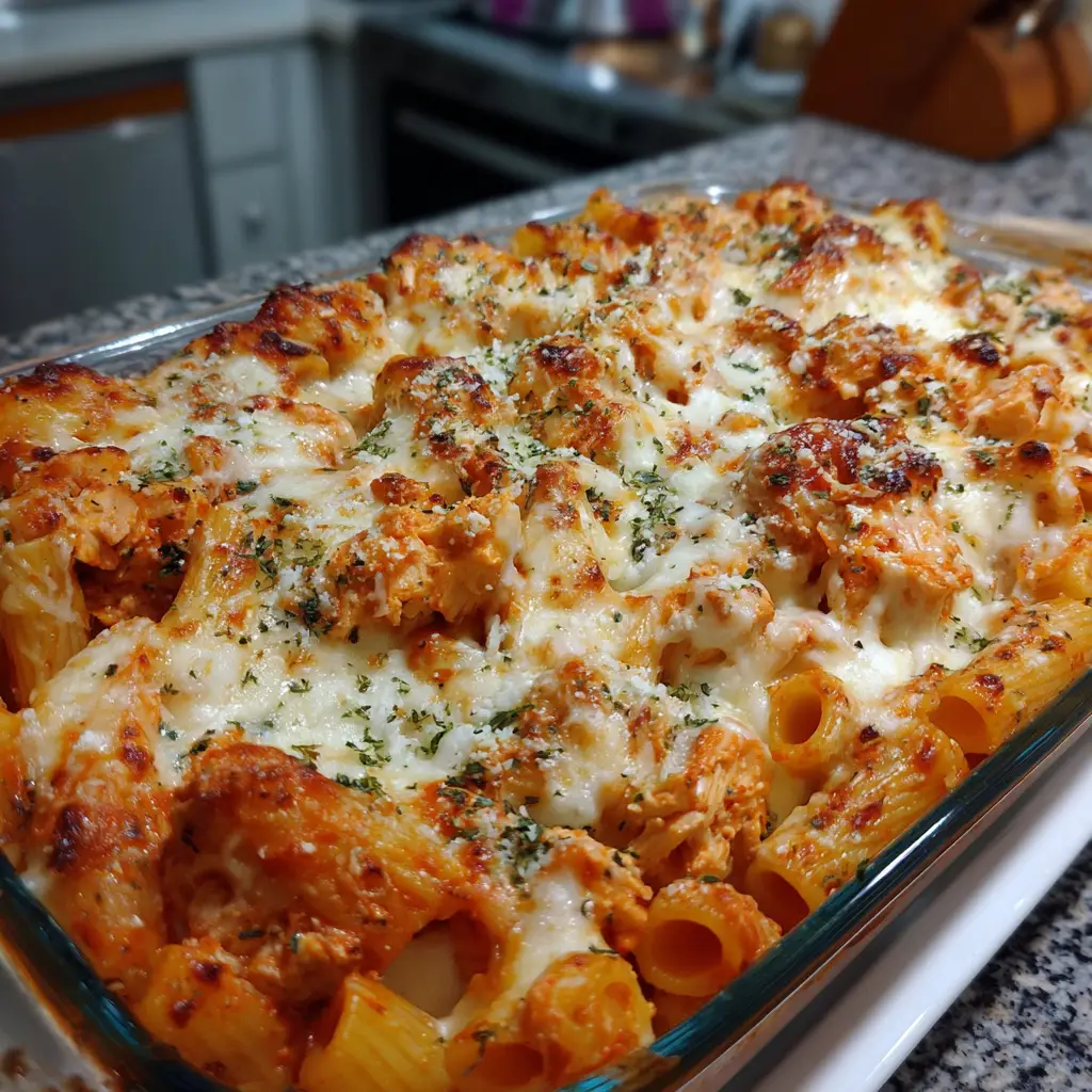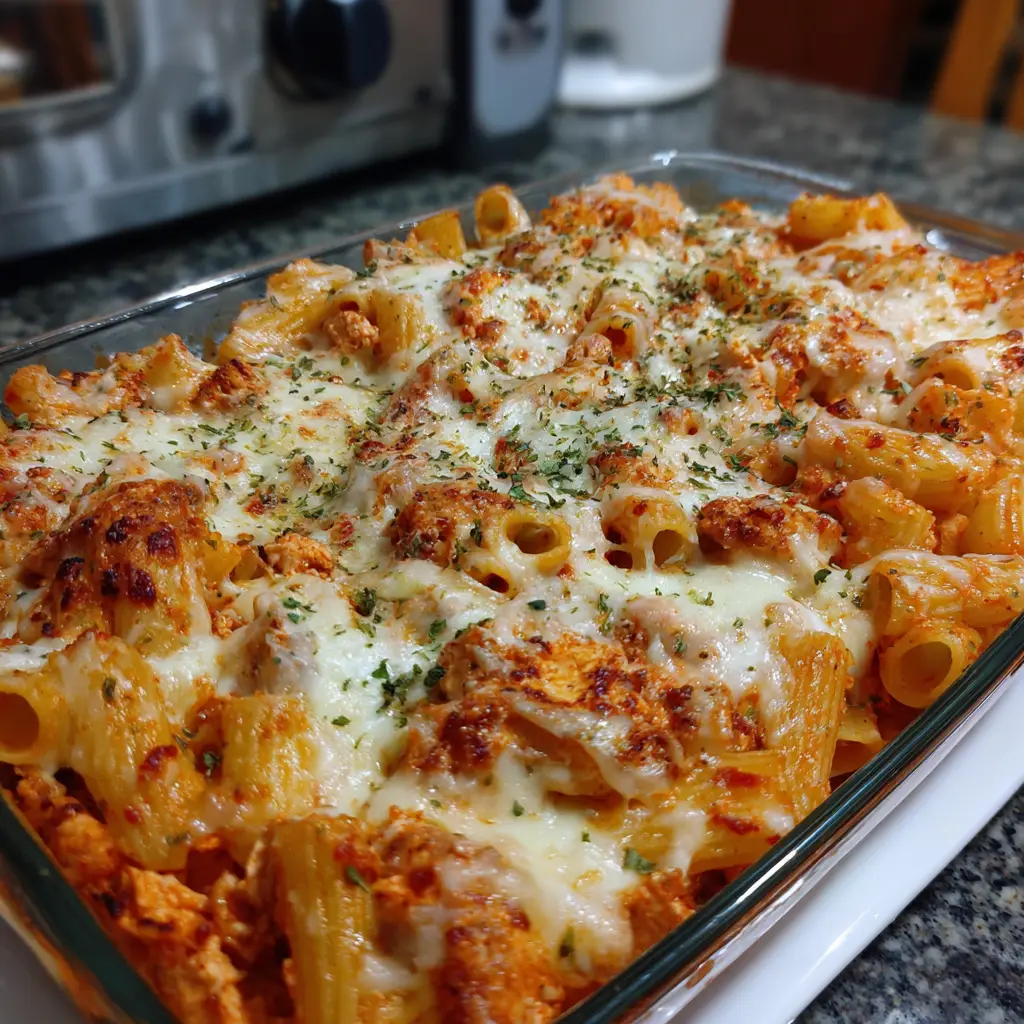 - Buffalo Chicken Rigatoni: Toss the cooked chicken in ½ cup of buffalo sauce before adding it to the pasta. Use a Monterey Jack and blue cheese crumble blend for the topping.