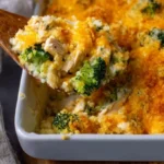 The comforting aroma of baked chicken and bubbling cheese fills the kitchen, wrapping you in a warm embrace that feels like home. Picture a creamy, savory casserole that’s a delightful symphony of flavors and textures, united in a single dish. Each scoop promises a taste experience that is both indulgent and nourishing, where tender pieces of chicken dance harmoniously with crisp-tender broccoli, all encased in a dreamy, cheesy sauce. The rich blend of melted cheddar and mozzarella adds a lavish creaminess that makes every bite melt in your mouth, while the crunchy, buttery Ritz cracker topping delivers a satisfying crunch that invites you to come back for more.
