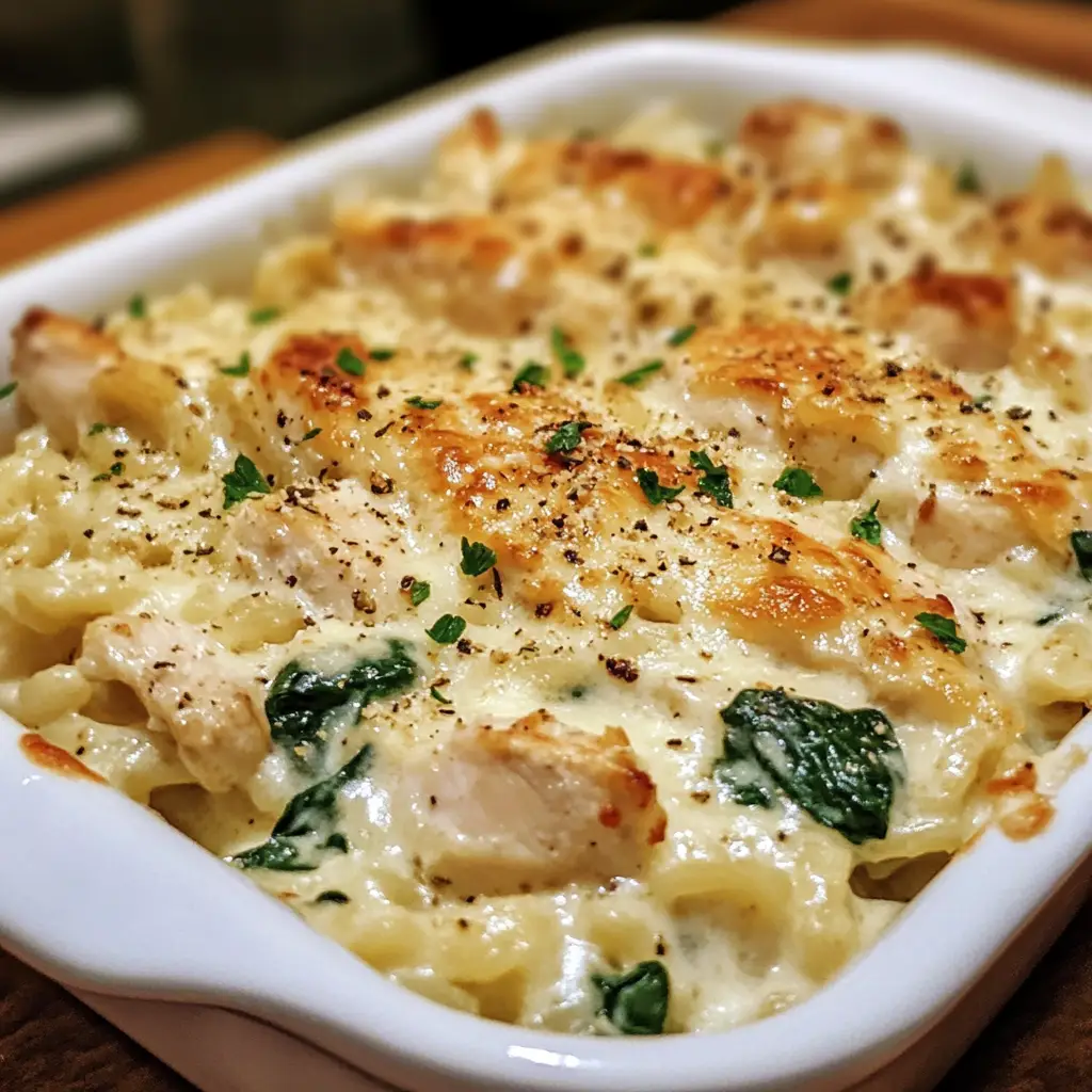 The Creamy Chicken and Spinach Alfredo Rice Bake is more than just a casserole; it’s a testament to the power of simple, quality ingredients coming together to create something truly magnificent. It’s a dish that requires no fancy techniques but delivers a result that tastes like it came from a professional kitchen. The combination of creamy, cheesy, savory, and hearty is simply unbeatable. It’s a reliable recipe that you will turn to again and again for its ease, its crowd-pleasing nature, and its profound ability to comfort and satisfy. So, preheat your oven, grate that Parmesan, and get ready to create a new family favorite that will have everyone asking for seconds.