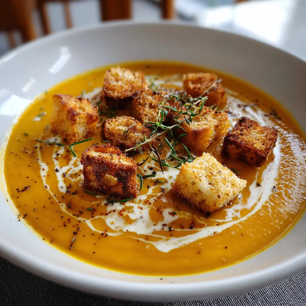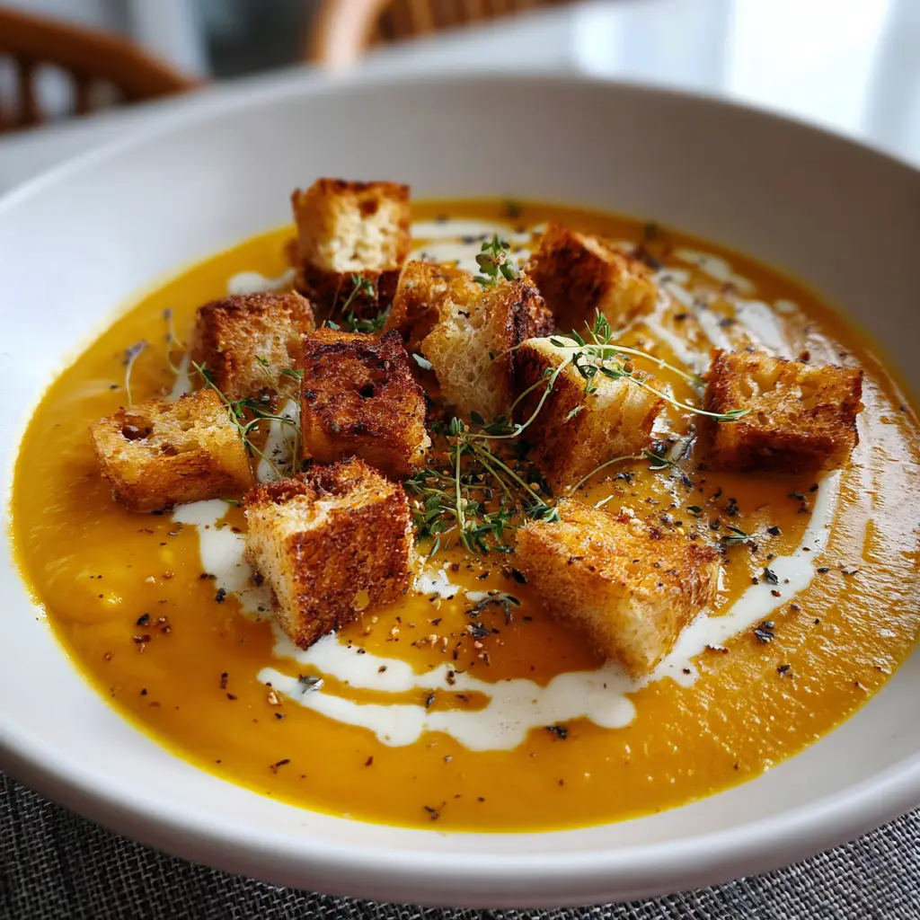 There is a particular elegance to a perfectly executed bowl of Pumpkin Soup. It is a dish that speaks of harvest abundance, of cozy evenings by the fire, and of sophisticated, understated flavor. This is not just a simple puree; it is a velvety, complex, and deeply satisfying culinary experience. The soup itself is a masterpiece of balance, sweet, savory, and spiced in perfect harmony, with a texture so luxuriously smooth it feels like liquid silk on the tongue. But the true stroke of genius lies in the crowning glory: homemade, crispy, golden garlic croutons that provide a dramatic and essential contrast.