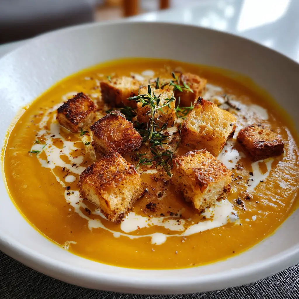 There is a particular elegance to a perfectly executed bowl of Pumpkin Soup. It is a dish that speaks of harvest abundance, of cozy evenings by the fire, and of sophisticated, understated flavor. This is not just a simple puree; it is a velvety, complex, and deeply satisfying culinary experience. The soup itself is a masterpiece of balance, sweet, savory, and spiced in perfect harmony, with a texture so luxuriously smooth it feels like liquid silk on the tongue. But the true stroke of genius lies in the crowning glory: homemade, crispy, golden garlic croutons that provide a dramatic and essential contrast.