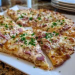 Creamy Reuben Pizza is a delightful twist on the classic Reuben sandwich, featuring a creamy sauce, corned beef, sauerkraut, and Swiss cheese on a crispy pizza crust.