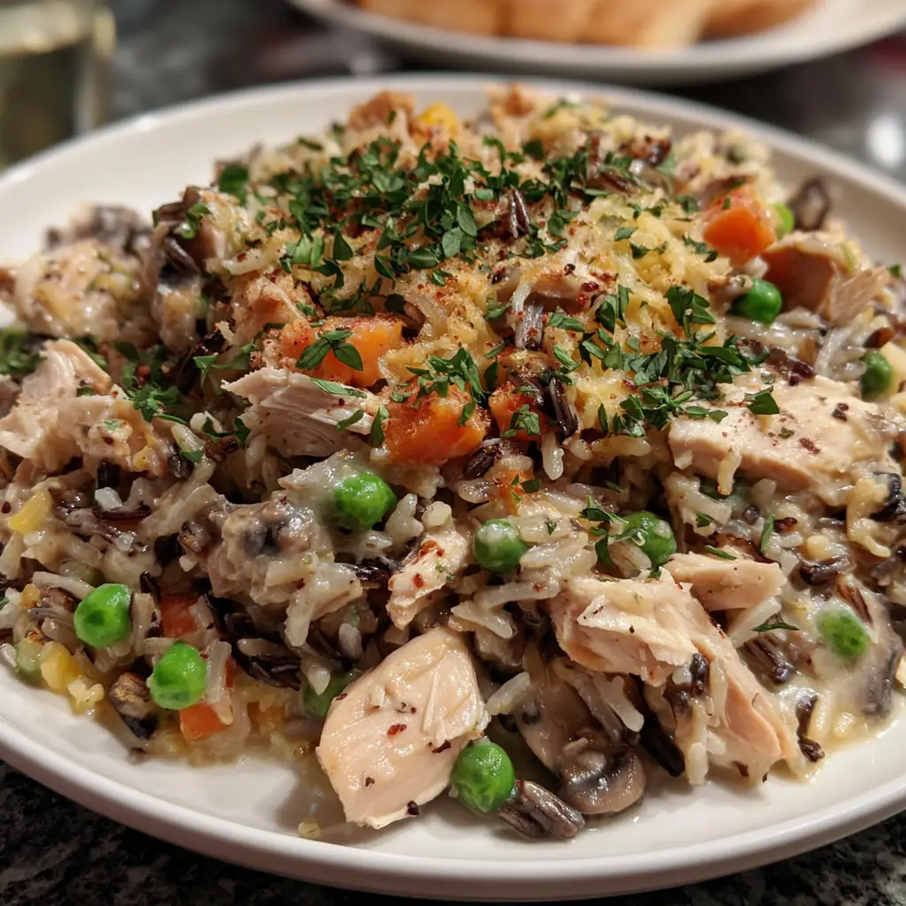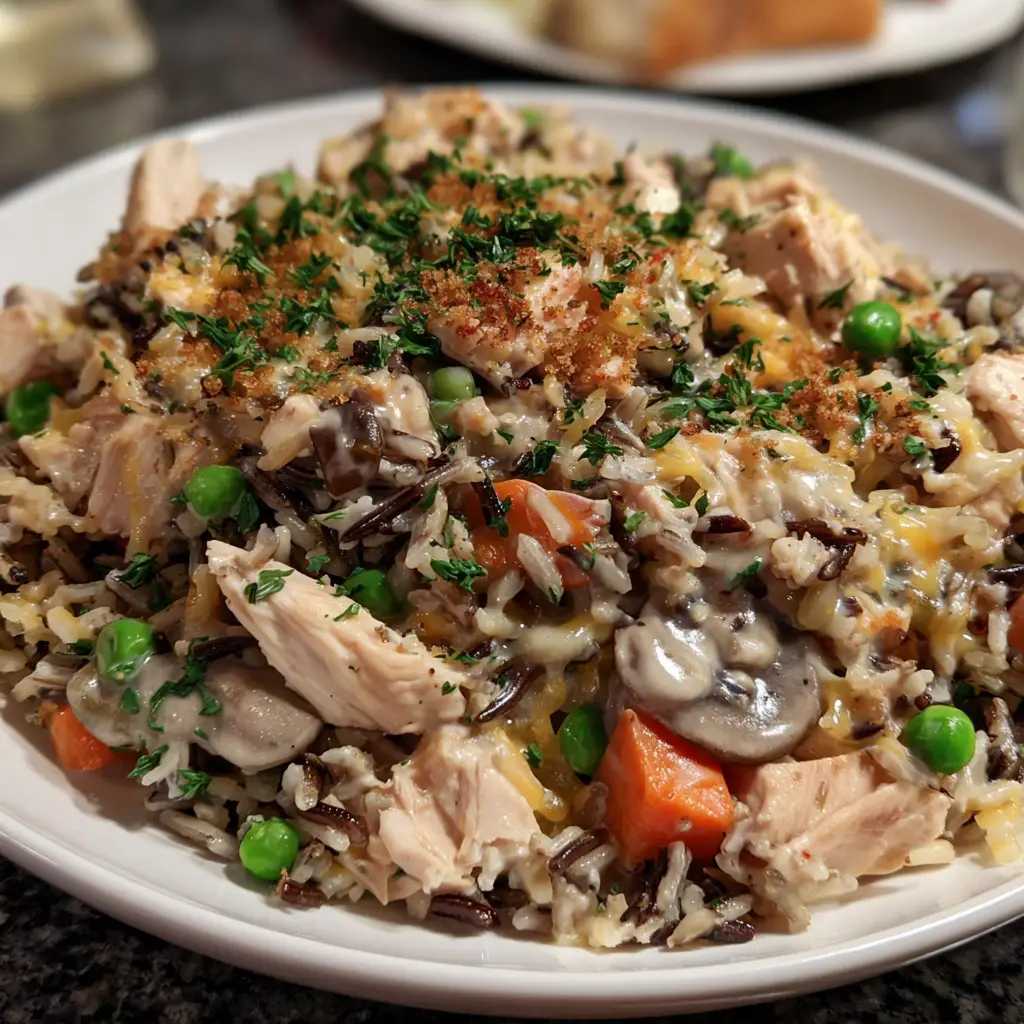 Imagine the ultimate post-holiday transformation: leftover roast turkey, often destined for sandwiches, being reborn into the most comforting, elegant, and satisfying one-dish meal imaginable. This is the Creamy Turkey and Wild Rice Casserole. It is the epitome of cozy, heartland comfort food, a dish that wraps you in a warm, culinary embrace. This casserole masterfully combines tender, juicy bites of turkey with the nutty, chewy texture of wild rice, all enveloped in a luxuriously creamy, herb-infused sauce, and crowned with a golden, buttery, crispy topping.