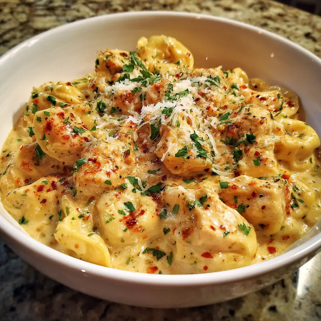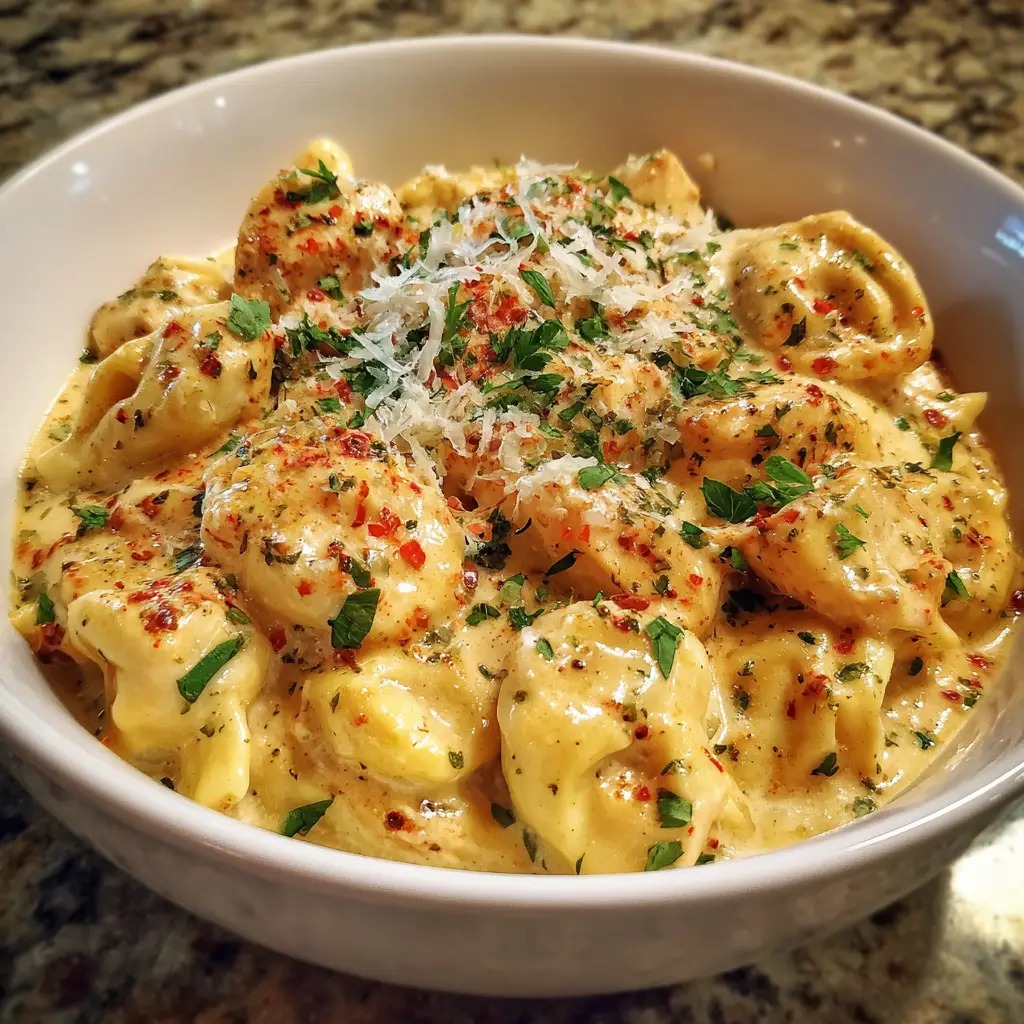 Return the cooked chicken (and any accumulated juices) to the pot. Stir gently to combine and heat the chicken through, about 2-3 minutes. The sauce will have thickened beautifully from the starches released by the tortellini. Taste and adjust seasoning if necessary.