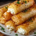 These crispy feta rolls elevate any meal with their exquisite flavors and textures. The moment you pull them from the oven, their golden brown, flaky exteriors catch your eye and beckon you to take that first bite. The complexity of tastes—the creaminess of the cheeses, the earthiness of the fresh herbs, and the contrasting sweetness and spice from the honey drizzle—creates an experience that’s truly satisfying.