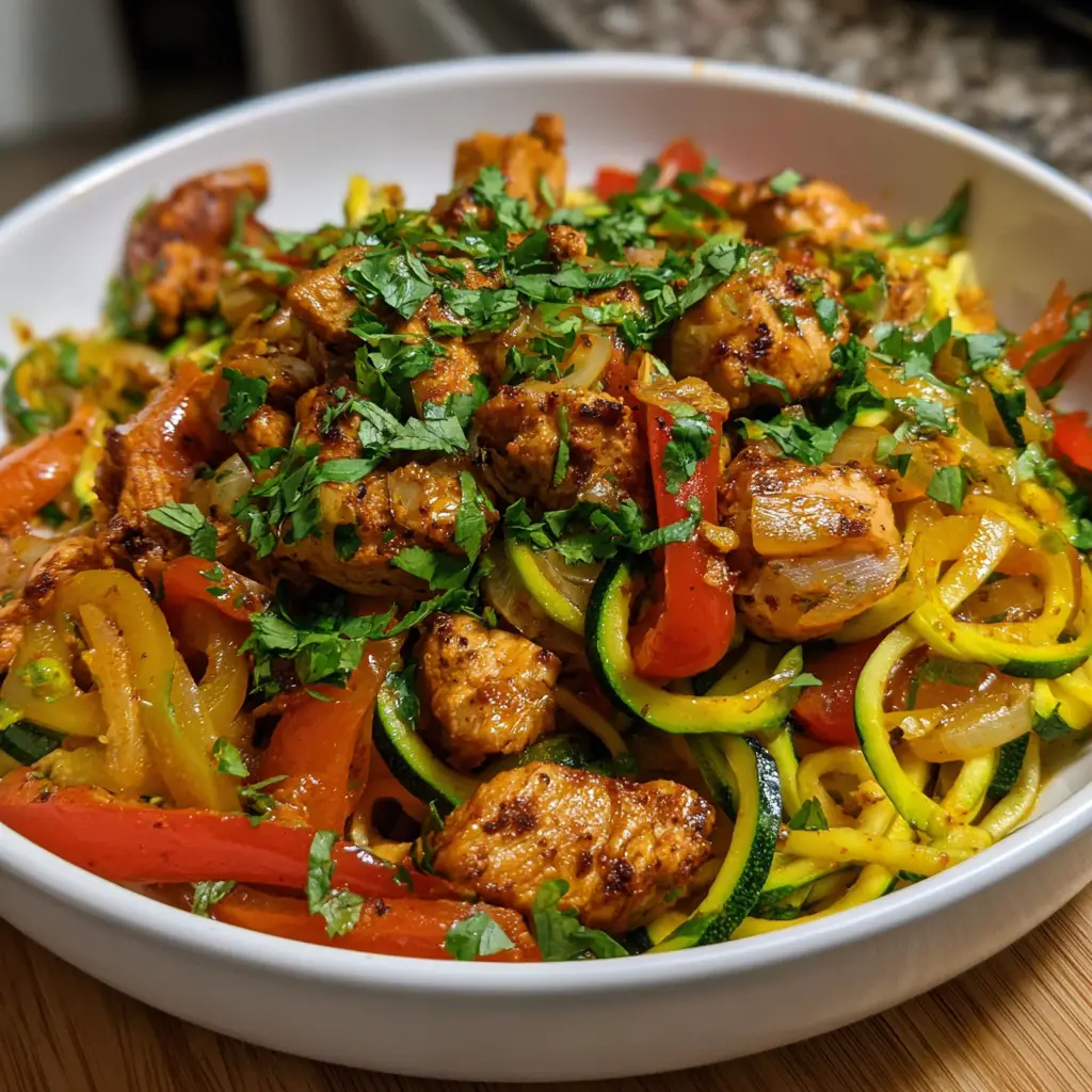 Fiery Chicken Fajita Zoodle Bowls represent a vibrant, modern fusion where the fiery, sizzling soul of Tex-Mex street food meets the clean, bright ethos of contemporary healthy eating. Imagine the classic, beloved flavors of chicken fajitas, the marinated, charred poultry, the sweet caramelized peppers and onions, the bold blend of chili and cumin, but instead of being wrapped in a soft tortilla, they are piled high atop a fresh, crisp nest of zucchini noodles, or “zoodles.” This dish is a celebration of texture and flavor, offering a satisfying crunch, a tender bite, and a symphony of smoky, spicy, and tangy notes in every forkful. Born from the desire to enjoy indulgent flavors without compromise, these bowls are a complete, macro-balanced meal that is naturally gluten-free, low-carb, and packed with nutrients. They are a testament to the idea that healthy eating does not mean bland or boring; it can be explosively colorful, deeply flavorful, and incredibly fun to eat.
