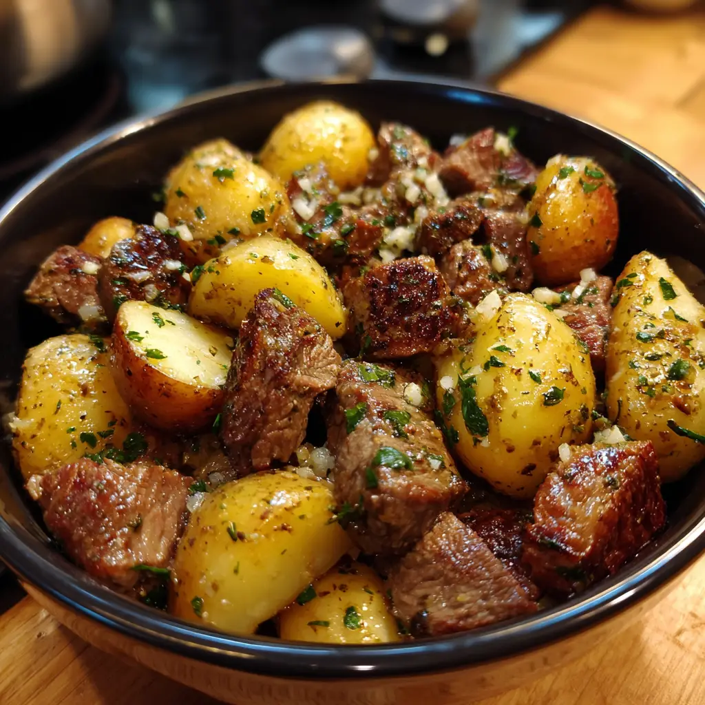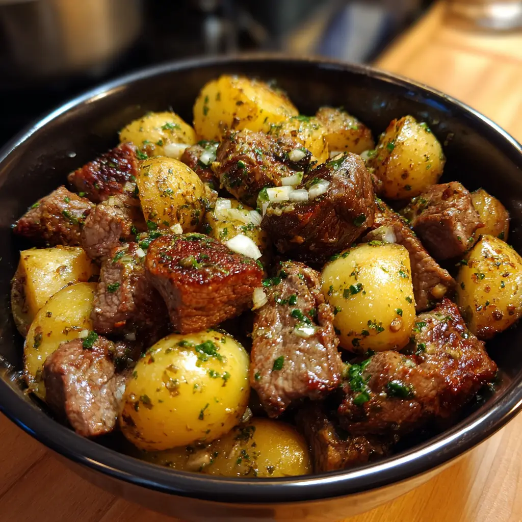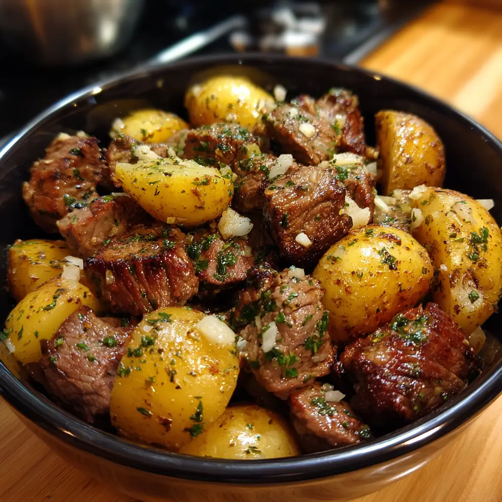 Garlic Butter Steak Bites and Potatoes is more than a recipe; it is a celebration of fundamental cooking techniques and timeless flavors. It proves that with a few quality ingredients and a bit of culinary confidence, you can create a meal that is far greater than the sum of its parts. The sizzle, the aroma, the vibrant colors, and the symphony of textures and tastes all come together to create a truly memorable dining experience. It’s a dish that impresses without pretense, comforts without complication, and satisfies on every conceivable level. So, heat your skillet, sharpen your knife, and get ready to create a one-pan wonder that will undoubtedly become a regular in your dinner rotation.