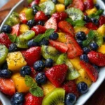 A vibrant medley of fresh fruits drizzled with a zesty honey-lime dressing, perfect for summer gatherings.