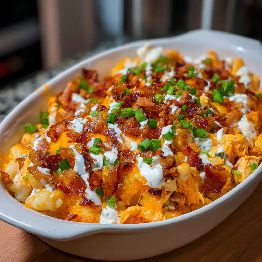 Loaded Buffalo Cheddar Chicken Bake: A Cheesy Delight