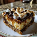 Picture the quintessential flavors of a campfire classic, the gooey, toasted marshmallow, the sweet, melting chocolate, and the crisp, buttery graham cracker, elevated to a level of sophisticated, handheld decadence that requires no flame and no skewer. Welcome to No-Bake S’mores Cheesecake Bars, a dessert that masterfully fuses the nostalgic joy of s’mores with the rich, creamy indulgence of a New York-style cheesecake, all without ever turning on your oven. This is a dessert of glorious layers: a thick, crumbly crust of crushed graham crackers and butter, a velvety-smooth, impossibly light filling of chocolate-studded cream cheese, a blanket of toasted marshmallow fluff, and a final artistic drizzle of melted chocolate. Each bar is a textural and flavor journey, offering the familiar campfire taste in a form that is elegant, shareable, and profoundly satisfying.