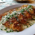 Parmesan Crusted Chicken with Creamy Garlic Sauce is a hallmark recipe that belongs in every home cook’s repertoire. It is a testament to the power of quality ingredients and fundamental techniques—proper dredging, achieving a golden sear, and building a velvety pan sauce—coming together to create something truly extraordinary. This dish delivers an experience that far exceeds its modest preparation time, offering a satisfying crunch, a burst of garlicky richness, and the deep, savory comfort that makes a meal memorable. It is a versatile canvas for creativity yet is perfect in its classic form. Whether you’re cooking to impress, to comfort, or simply to treat yourself to a fantastic homemade dinner, this recipe is a guaranteed success. It turns a simple chicken breast into a celebration, proving that with a little care and the right combination of flavors, you can create restaurant-level magic right in your own kitchen. So, preheat your skillet, grate that Parmesan, and get ready for a standing ovation at the dinner table.