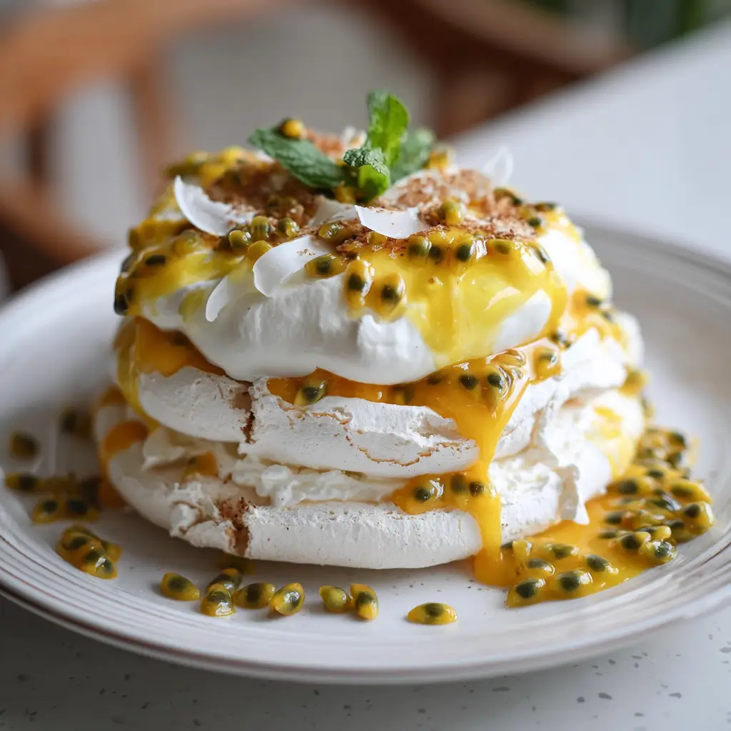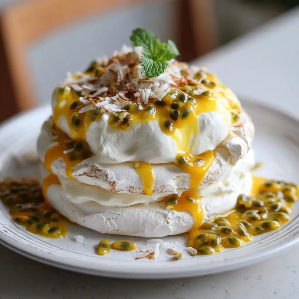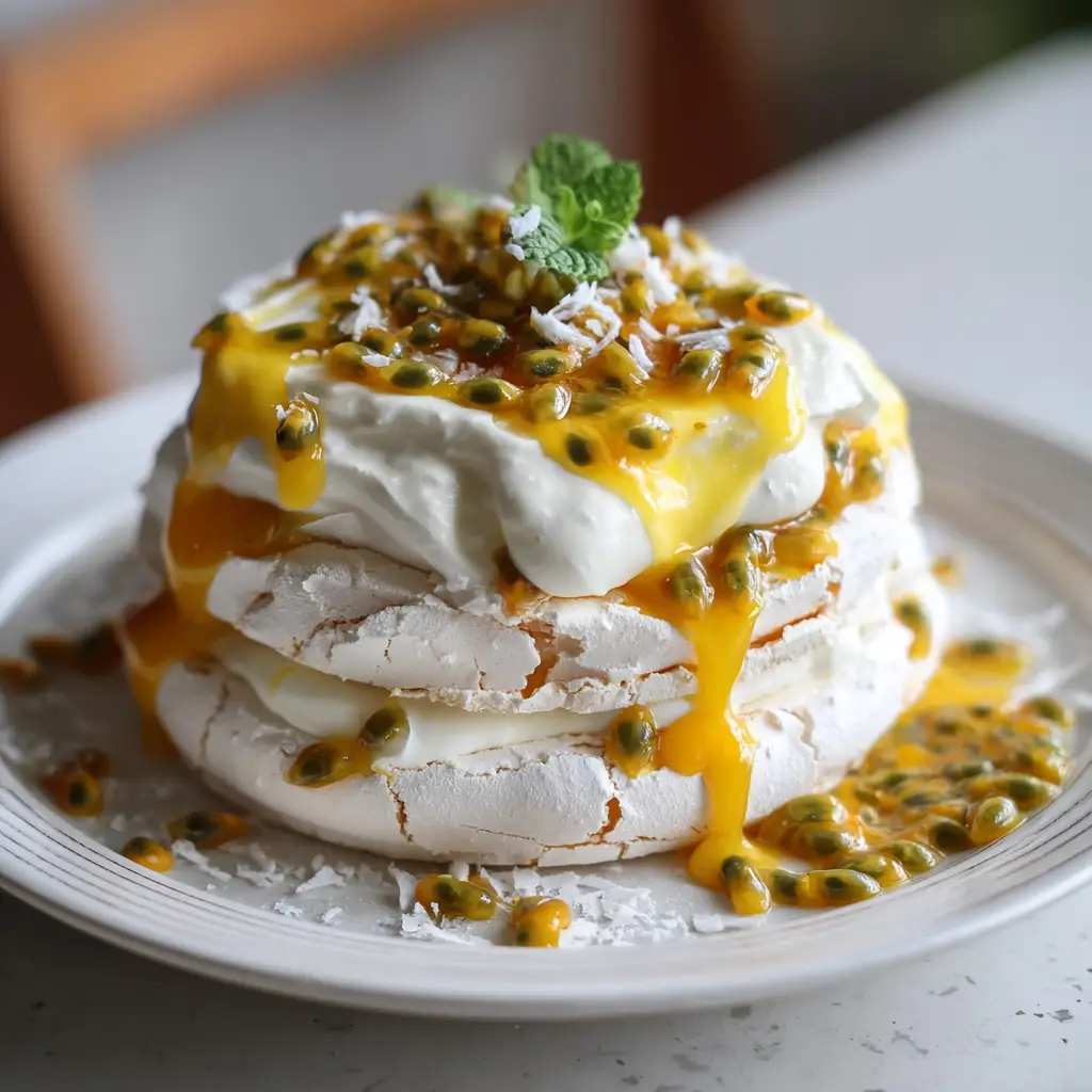 Passionfruit and Coconut Pavlova Stack: Tropical, Elegant Dessert