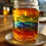 The vibrant hues of the rainbow burst forth like laughter as you unveil your latest artistic creation: a Rainbow in a Jar. Imagine a spectrum of dazzling colors, layered with precision and care. As you gaze into the jar, your eyes dance with delight at the blissful interplay of reds, blues, greens, and yellows. The sweet scent of honey wafts through the air, mingling with the crisp tang of dish soap and the refreshing pop of fruit-flavored water. Each layer captures your senses, creating an experience that excites the imagination and warms the heart. This isn’t just a recipe; it’s a celebration of color, a joyful science project, and a beautiful display of creativity.