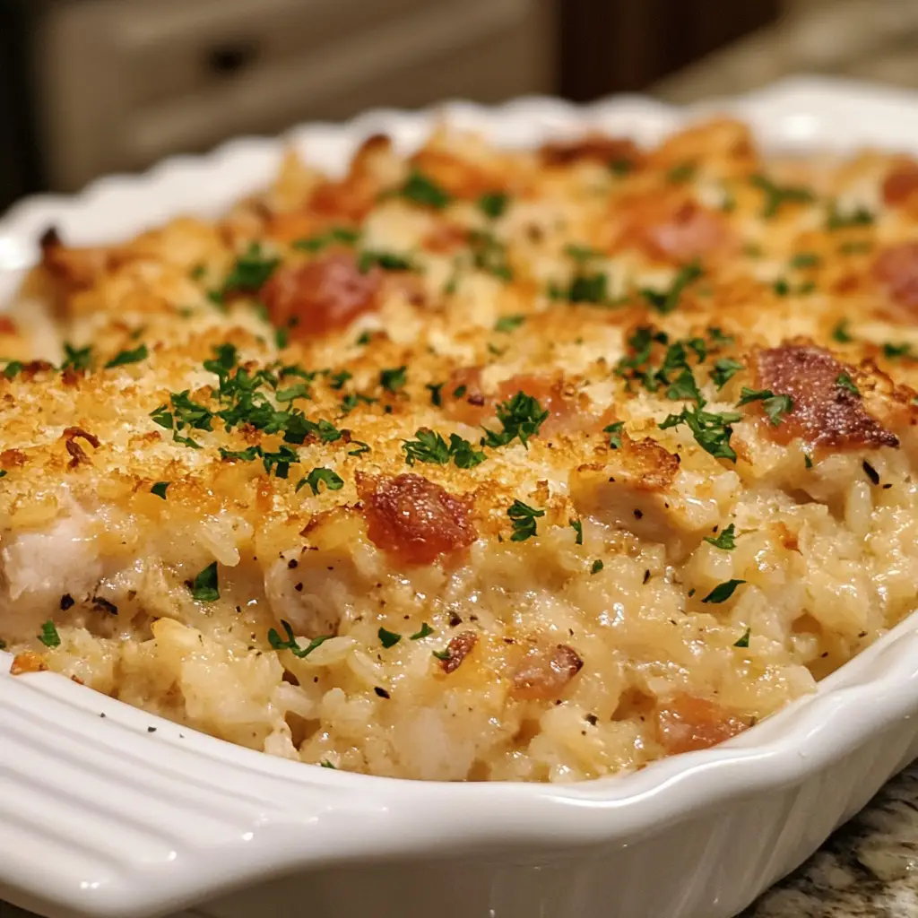 Ranch Chicken and Rice Casserole is the undisputed workhorse of the dinner table—a reliable, comforting, and endlessly satisfying dish that has earned its place in the canon of classic American comfort food. It represents the beautiful simplicity of a meal where everything comes together in one dish to create a harmonious, flavorful, and complete dinner that requires little effort but yields immense reward. This recipe provides a detailed guide to achieving a perfectly cooked casserole with tender chicken, fluffy rice, and a creamy, cheesy sauce that is bursting with the iconic flavor of ranch. It is a testament to the idea that the best meals are often the simplest ones, built on a foundation of hearty ingredients and familiar flavors. So, the next time you need a dinner solution that is guaranteed to please, turn to this casserole. It’s more than just food; it’s a warm, comforting promise of a meal well shared.