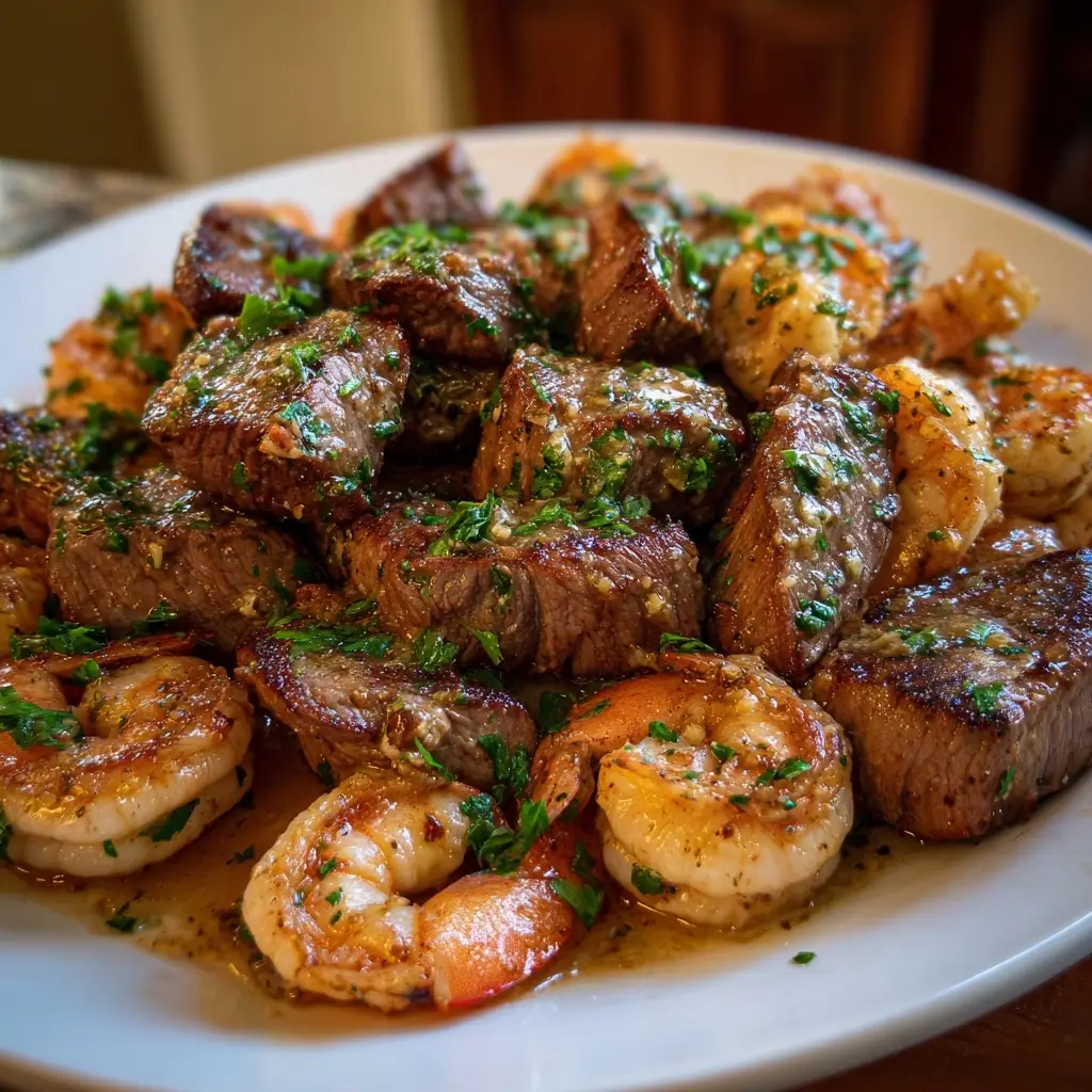 Return the cooked steak bites to the skillet with the shrimp. Toss everything together, allowing the flavors to meld for an additional minute. This is where the garlic butter really brings everything to life!