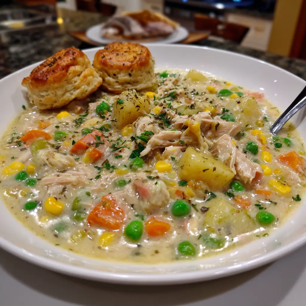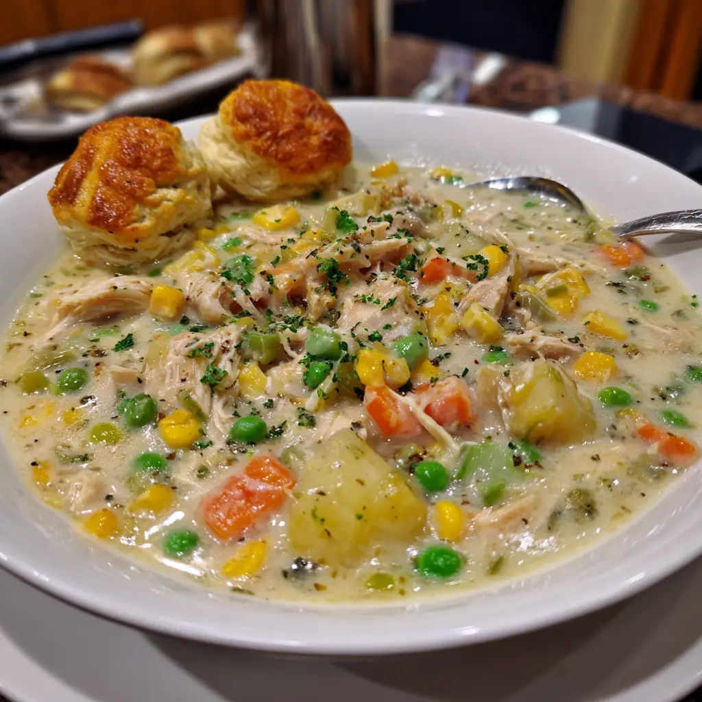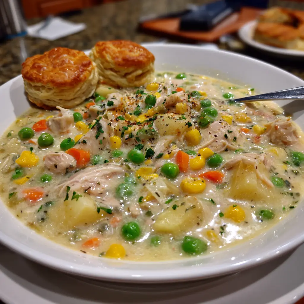 Taste the soup and adjust seasoning with more salt and pepper if needed. Ladle the hot soup into bowls, garnish with fresh parsley, and serve immediately with warm, flaky biscuits on the side for the ultimate pot pie experience.