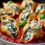 There’s something undeniably indulgent about the first bite of Spinach and Ricotta Stuffed Shells. As you take that bite, the soft shell cradles an exquisite filling that melds creamy ricotta with vibrant, earthy spinach. You can almost feel the warmth radiating from the cheesy center, as a lush marinara sauce envelops the entire creation, adding a sweet-tangy depth that sings in harmony with every forkful. The aroma wafting from the oven—herbs mingling with melted cheese and simmering tomatoes—fills the kitchen with an invitation to gather around the table. This dish isn’t just a meal; it’s a comforting embrace on a plate, a reminder of family dinners and the joy of sharing love through food.