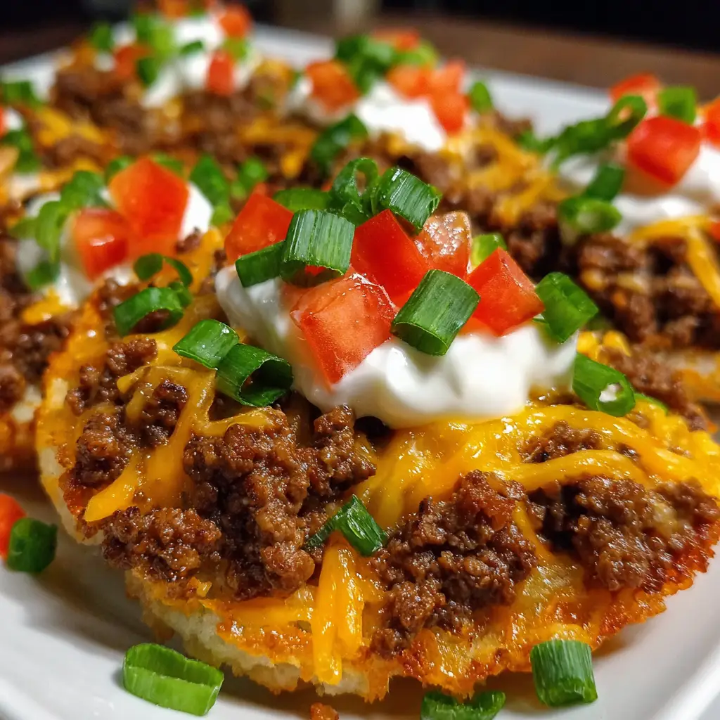 • Seven-Layer Dip Bites: Layer refried beans, then the beef, then cheese. After baking, top with diced tomatoes, lettuce, a dollop of guacamole, and a drizzle of ranch.